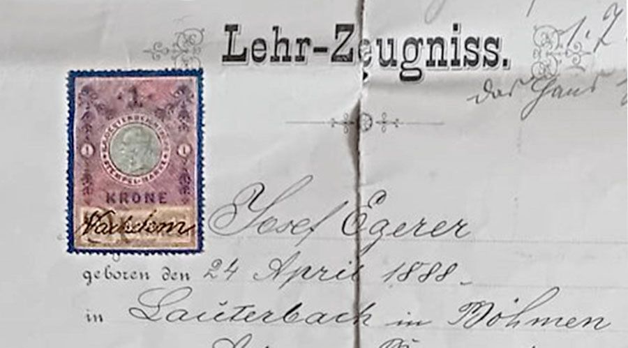 Bis ins Jahr 2025 kannte ich noch nicht einmal die Vornamen meiner sudetendeutschen Großeltern. Nun aber ist da ein abgewetztes Lehrzeugnis aufgetaucht, aus dem urkundlich hervorgeht, dass mein Opa aus Schlaggenwald – ebenso wie mein rheinischer Opa – Josef hieß. Der Name meiner Oma ist mir noch immer unbekannt. Dass Frauen für die Abstammung ohnehin „irrelevant“ sind, wusste ich ja bereits. Ein biologisches Paradoxon, auf das ich unten noch zurückkomme.