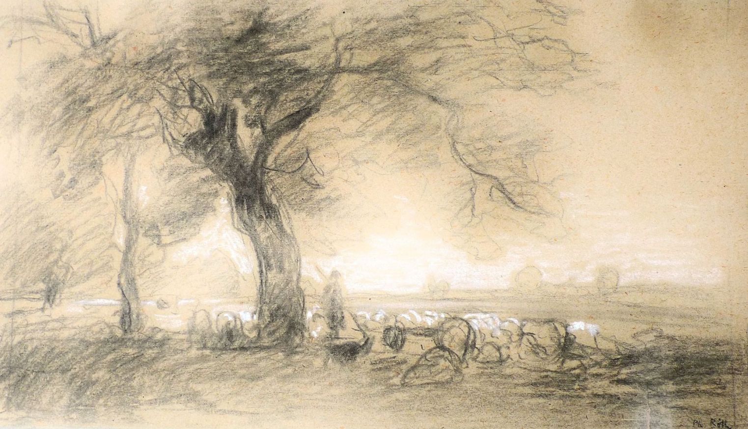Philipp Röth (1841-1921) gehörte zu den vielen deutschen Landschaftsmalern der Spätromantik, einem Zweig der Malerei, der – abgesehen von den ganz großen Namen – nie die höchste Wertschätzung genoss. So sind Werke von Röth heute zwischen 500 und 2.500 Euro wert, selbst Ölgemälde. In Darmstadt geboren, erhielt er dort auch seine künstlerische Ausbildung. Weitere Stationen waren Karlsruhe und Düsseldorf, bis er 1871 nach München kam, wo er schließlich an der Kunstakademie wurde. Bis zu seinem Tod wohnte er im Stadtteil Gern, fußläufig zur Winterlinde, liebster Arbeitsort für den Freiluftkünstler.