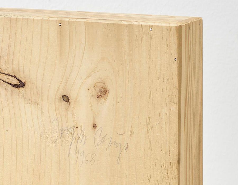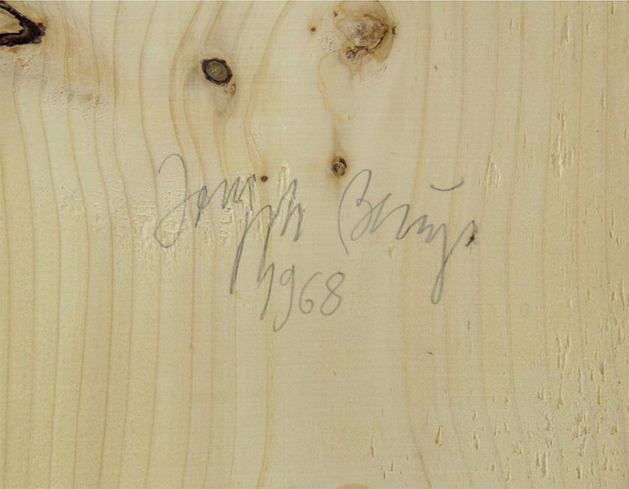 Und ja, ein paar Wochen später, habe ich dann sogar eines von diesen „Multiples“ in der Hand – so nennt man die preiswerten Serienexponate fürs Volk. Da helfe ich nämlich unserem Kölner Professor ein paar Sachen ins Auto tragen, unter anderem eine kleine Holzkiste, mit Bleistift in deutscher Kurrent beschriftet und signiert. „Davon können se jetzt halten wat se wollen, aber dat is ein echter Beuys“, bekomme ich vorsorglich mahnend erklärt. Augenscheinlich errät er in meinem fragenden Blick die klassisch-despektierliche Frage, ob das jetzt Kunst ist, oder …
