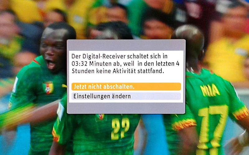 Es sind so kleine Sachen, die einen impulshaft aus der Lethargie reißen können. Folgende Situation: WM im Fernsehen, CMR:BRA, 22:26 Uhr MEZ und dann die sonderbare Einblendung: „Der Digitalreceiver schaltet sich in 03:32 Minuten ab, weil in den letzten 4 Stunden keine Aktivität stattfand.“ Wie bitte? Kamerun hat gerade gegen Brasilien ein Tor geschossen, und ich schau doch aufmerksam zu? Mir bleiben knappe drei Minuten zum Nachdenken.