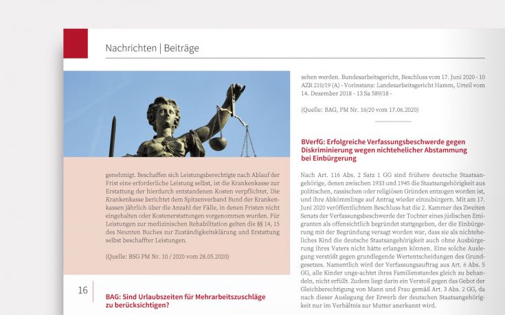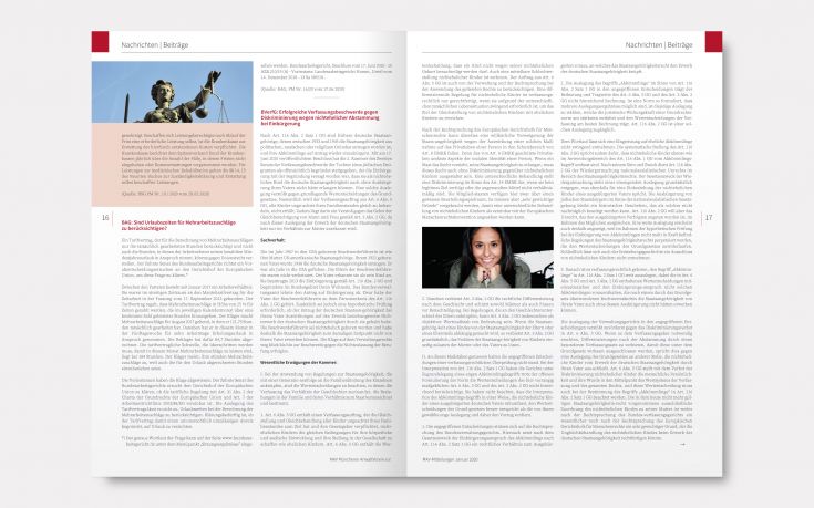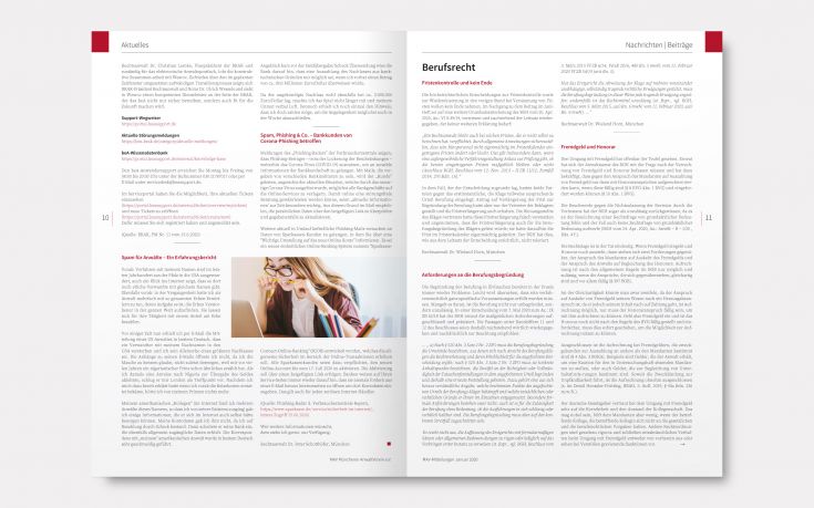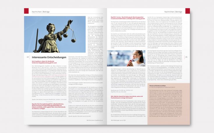 Oben: Titelseite, Editorial und Kurzartikel. Unten: Überlauf bei längeren Artikeln (typografische Detailansicht).