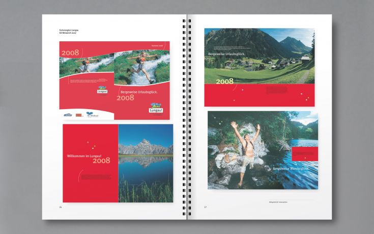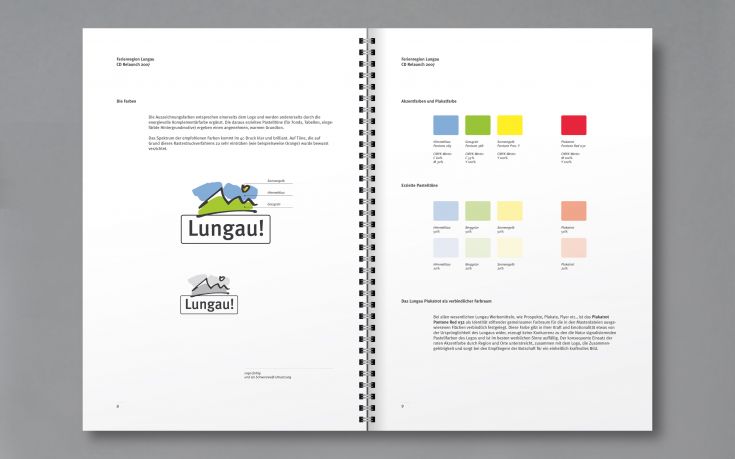 Für viele Erscheinungsbilder ist mit der Ausgestaltung der Geschäftspapiere keine weitere „Grundlagenforschung“ notwendig. Im größeren Rahmen ist das Corporate Design jedoch nach innen und außen erklärungsbedürftig. Beispiel: Eine komplette Designrichtlinie für die Lungau-Tourismuswerbung. Mit verbindlichen Vorgaben für Typografie, Farben und Fotografie. Layouttemplates erleichtern externen Grafikbüros die Neuentwicklung von Medien.