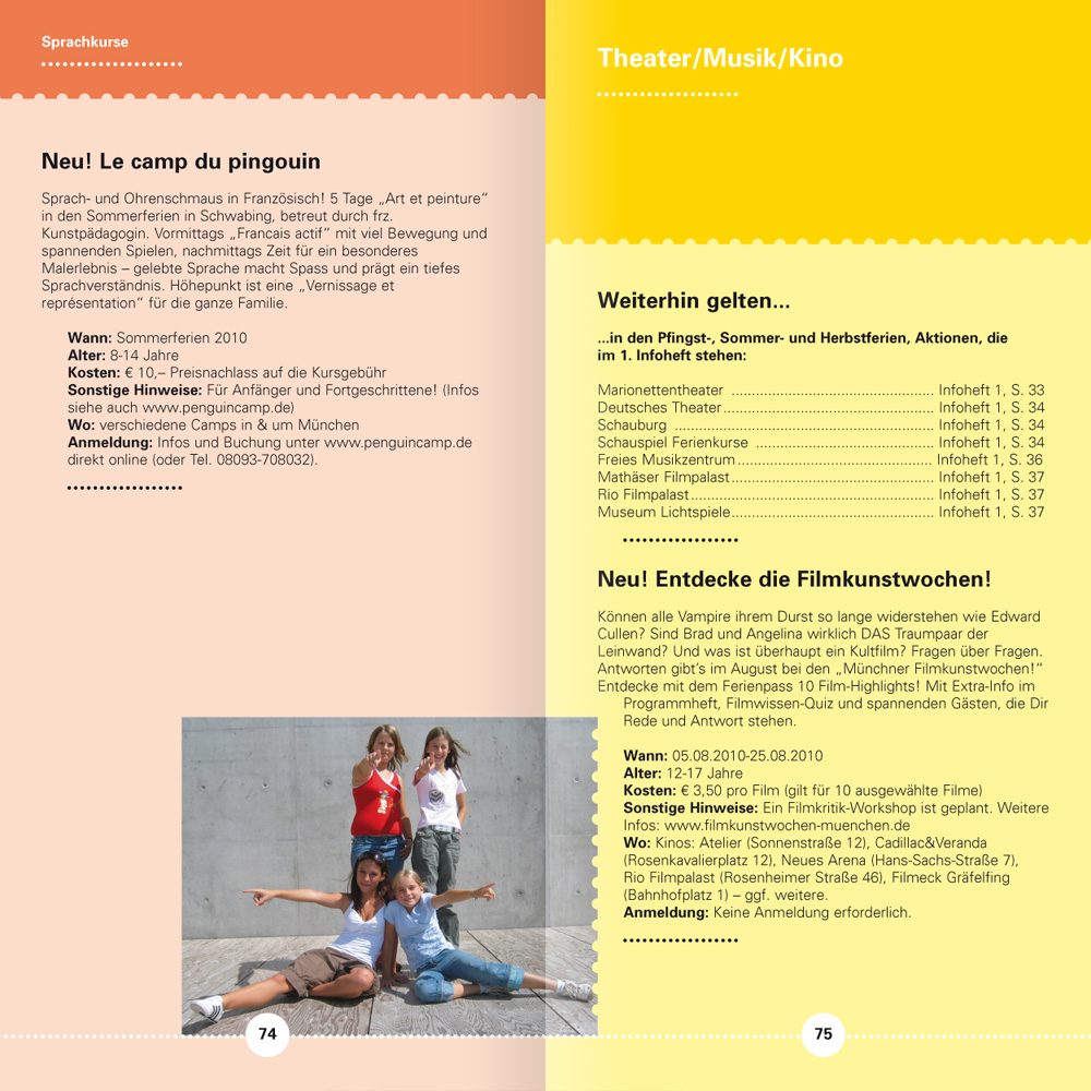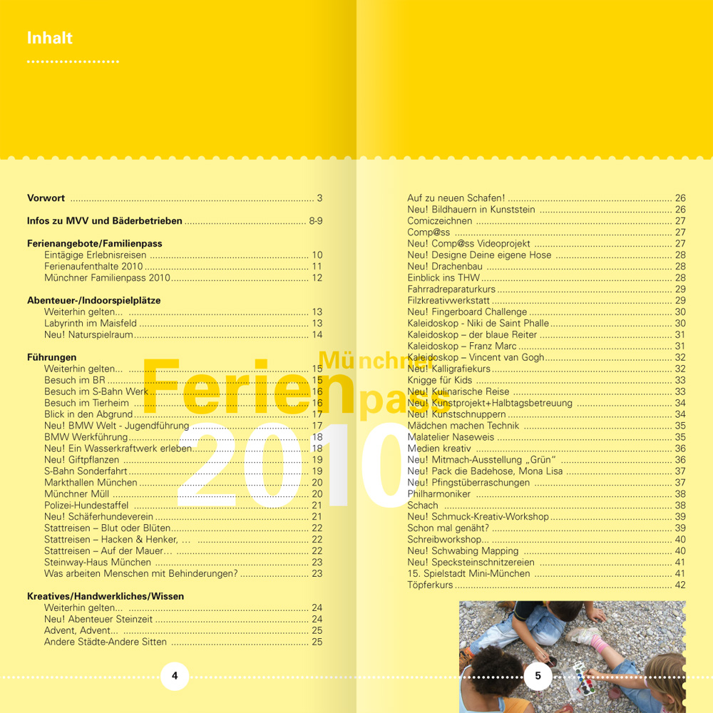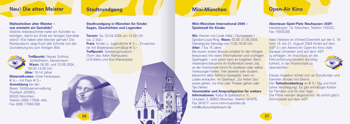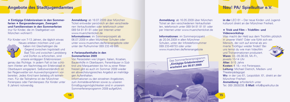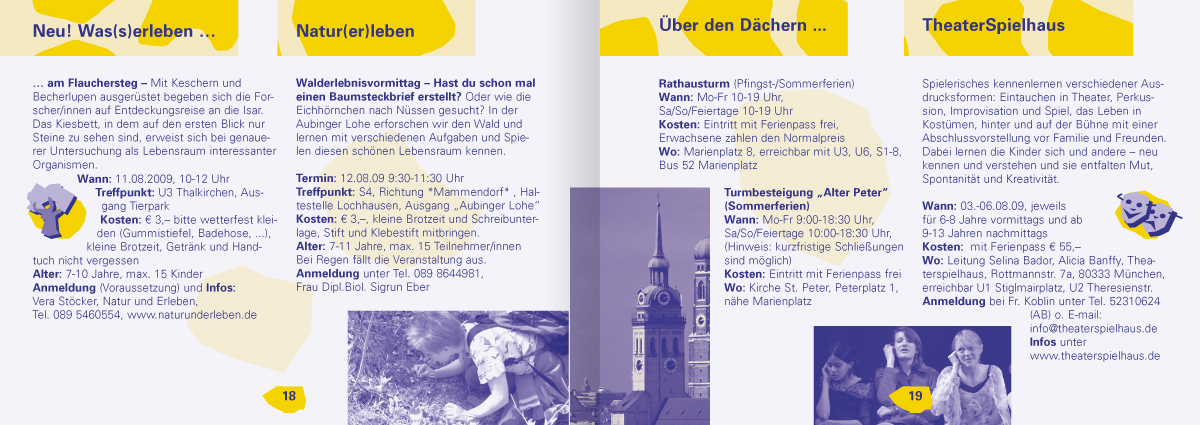 Wenn man im Tagesgeschäft seine archivierten Dateien sondiert, ist man mitunter ganz verblüfft, wie weit das eigene Wirken zeitlich zurückreicht. Je länger, je lieber und desto konstruktiver war und ist dann wohl die Zusammenarbeit. Beim Projekt Münchner Ferienpass trägt unsere älteste Datei das Erstelldatum 22. Mai 2001. – Zeit für ein Resümee, in gebotener Kürze, aber nicht ohne Stolz.