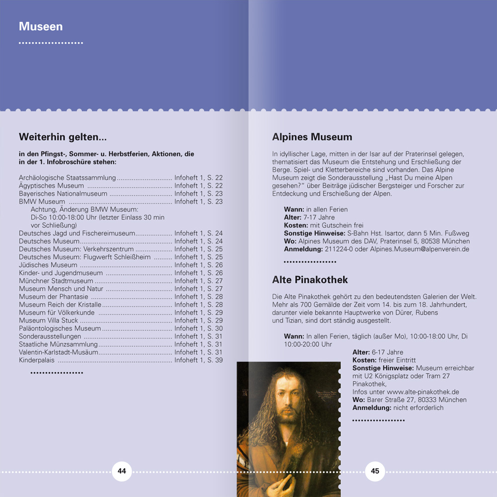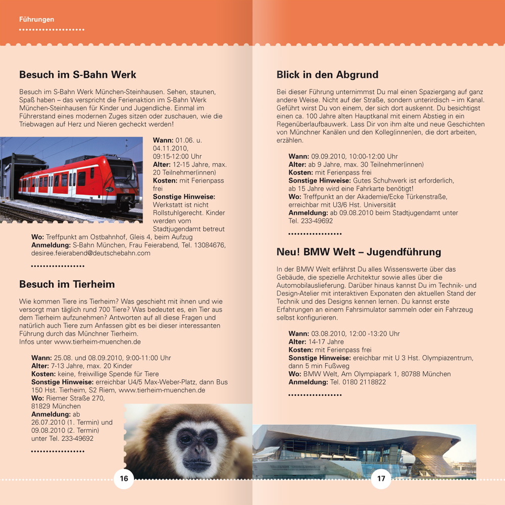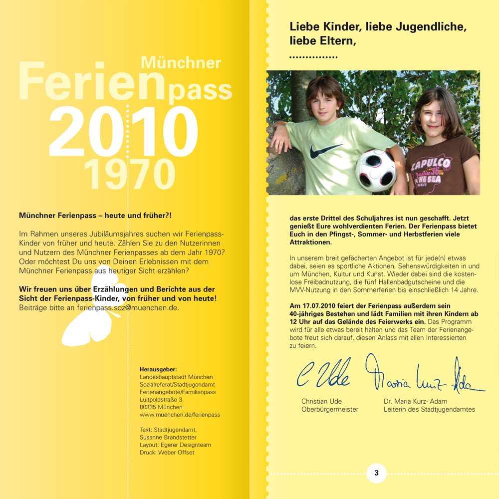 Wenn man im Tagesgeschäft seine archivierten Dateien sondiert, ist man mitunter ganz verblüfft, wie weit das eigene Wirken zeitlich zurückreicht. Je länger, je lieber und desto konstruktiver war und ist dann wohl die Zusammenarbeit. Beim Projekt Münchner Ferienpass trägt unsere älteste Datei das Erstelldatum 22. Mai 2001. – Zeit für ein Resümee, in gebotener Kürze, aber nicht ohne Stolz.
